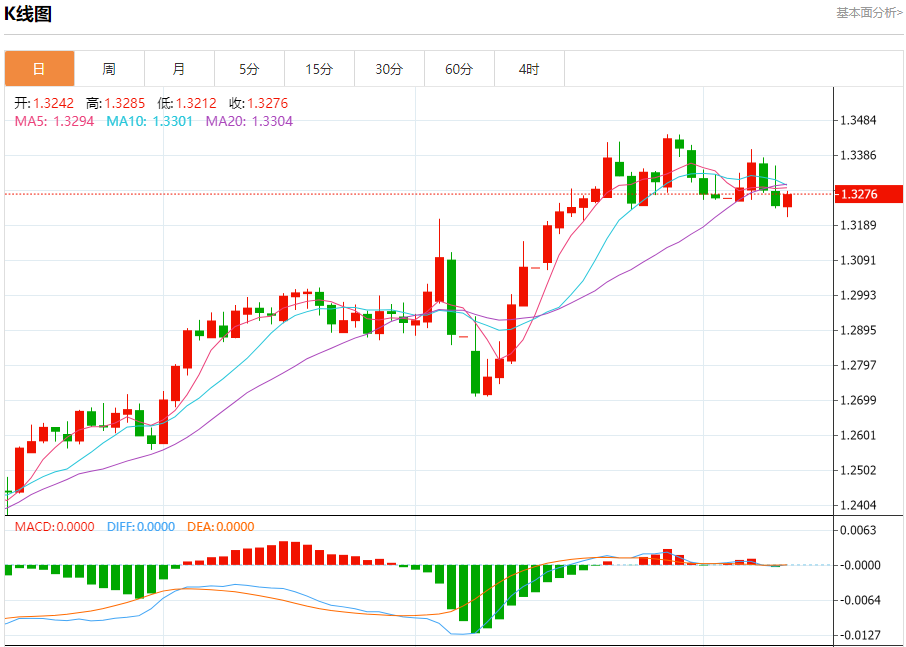 英镑/美元:截止北京时间20:18,英镑/美元上涨,现报1.3276,涨幅0.23%。纽市盘前,(GBPUSD)价格在最近的盘中交易中下跌,突破了0.3260的关键支撑位,该支撑位代表了短期基础上明显负面形成的颈线——三重顶模式,逆转了之前的看涨趋势。这一突破被认为是价格行为转向的强烈技术信号,支持价格主导的熊市修正波的延续。
