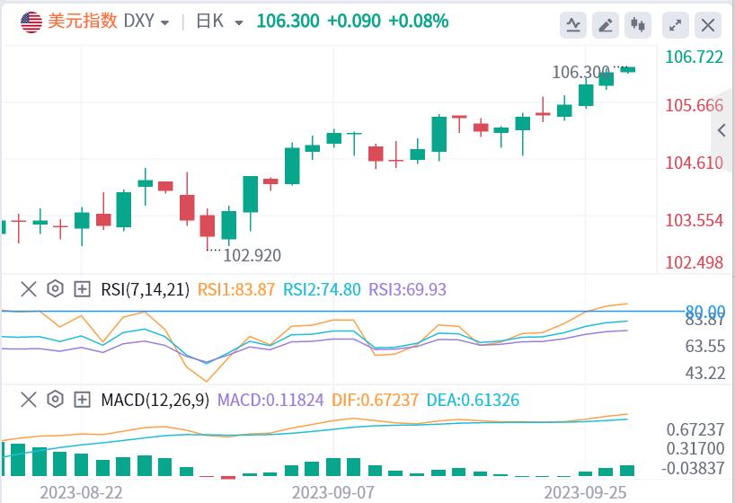 由于房源紧缺买家竞相争夺,美国房价连续第六个月上涨, 7月份美国房价指数环比上涨了0.6%。但因担心物价上涨和政治环境,美国9月谘商会消费者信心指数录得103,为连续第二个月下滑,低于预期的105.5。