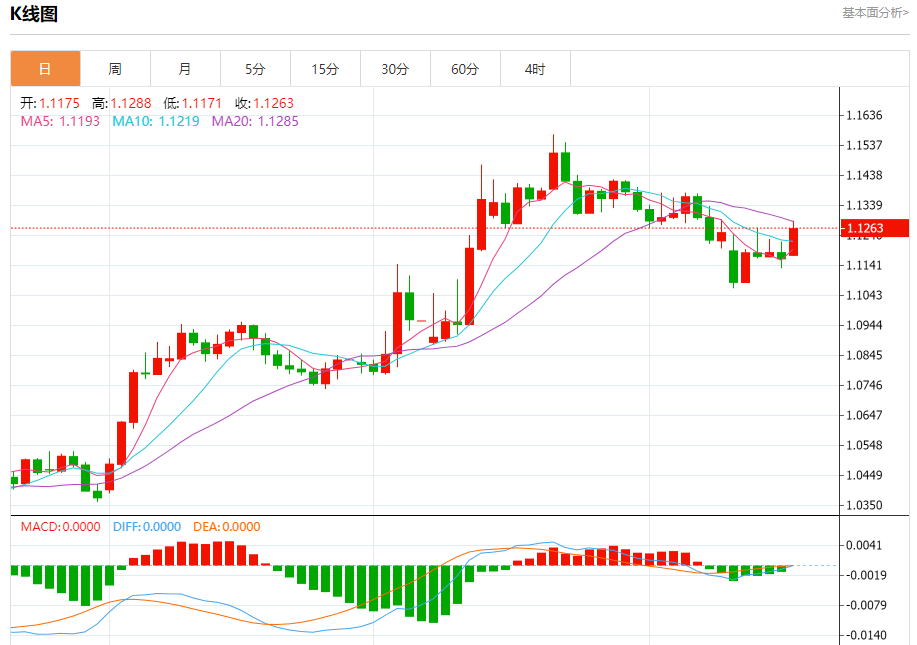 欧元/美元:截止北京时间20:20,欧元/美元上涨,现报1.1265,涨幅0.89%。纽市盘前,(欧元兑美元)价格在最近的盘中交易中上涨,突破了短期限制其之前交易的熊市修正价格通道的顶部,受到(RSI)积极信号的支持,超过了EMA50的负面压力。