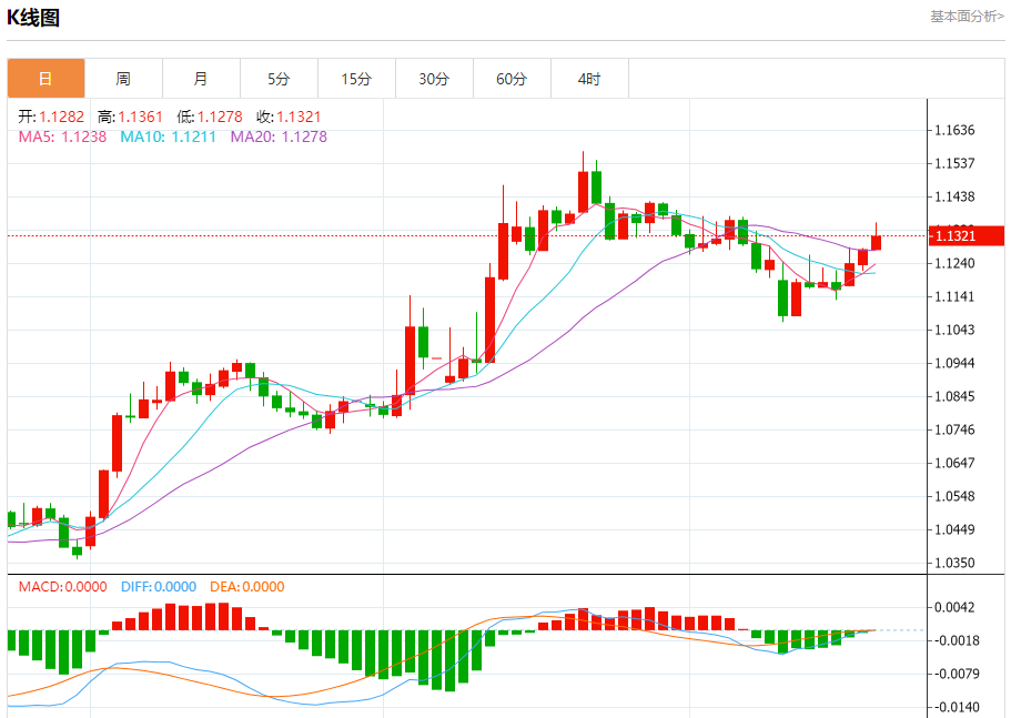 欧元/美元:截止北京时间20:18,欧元/美元上涨,现报1.1323,涨幅0.35%。纽市盘前,(欧元兑美元)的价格在最近的盘中交易中下跌,收集了之前上涨的收益,并试图在(RSI)上卸载一些明显的超买条件,特别是在那里出现负面重叠信号的情况下,在短期基础上主要看涨趋势占主导地位,并且沿着一条斜线交易。