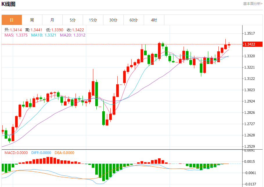 英镑/美元:截止北京时间20:28,英镑/美元上涨,现报1.3424,涨幅0.03%。纽市盘前,(GBPUSD)价格在最后一个交易日上涨,因其准备攻击1.3440处的顽固和关键阻力,受其在EMA50上方的持续交易支持,并在短期主要看涨趋势和沿一条斜线交易的主导下,价格成功地卸载了(RSI)的明显超买条件,从而重新获得了积极的动力。