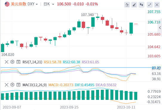 美元指数:截止发稿,美元指数交投于106.50附近。美国经济正显示出火热的迹象,9月份发布的消费者和生产者价格指数数据高于预期,提醒投资者美联储仍然依赖数据,在这种情况下,他们可以考虑在今年剩余时间内再次加息以对抗通胀。技术面上,如日线图所示,美元指数继续显示出短期技术前景,倾向于中性,并带有看跌偏见。为了获得控制权,买家必须在20天SMA上方建立强有力的支撑,尽管他们会遇到最近获得显着动力的空头的阻力。交易者应观察小时图,因为RSI闪烁超买条件,这意味着健康的技术修正可能即将到来。