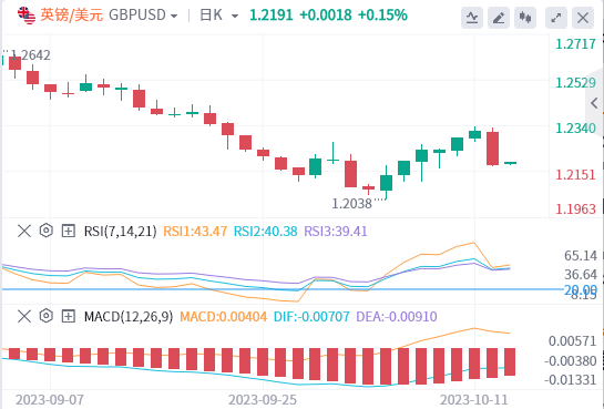 欧元:截止发稿,欧元/美元徘徊于1.0541附近。昨日欧元/美元下跌,收报1.0528,跌幅0.86%。欧央行公布了9月会议纪要,显示“绝大多数成员支持加息25个基点”。加息与暂停加息之间的抉择千钧一发,政策考虑也很重要。周五,欧盟统计局将公布8月工业生产数据,欧洲央行行长拉加德将参加世界银行和国际货币基金组织年会的小组讨论。技术面上,汇价上行的初步阻力位于1.0602,进一步阻力位于1.0678,关键阻力位于1.0717;汇价下行的初步支撑位于1.0488,进一步支撑位于1.0449,更关键支撑位于1.0373。
