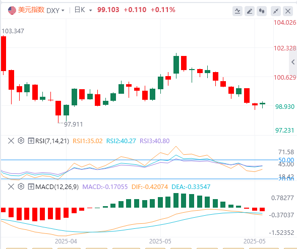 周一,因特朗普政策大转弯,以及他目前正在推动的全面支出和减税议案令投资者对美国资产望而却步,美元指数持续下行,跌破99关口,截至目前,美元报价99.10。