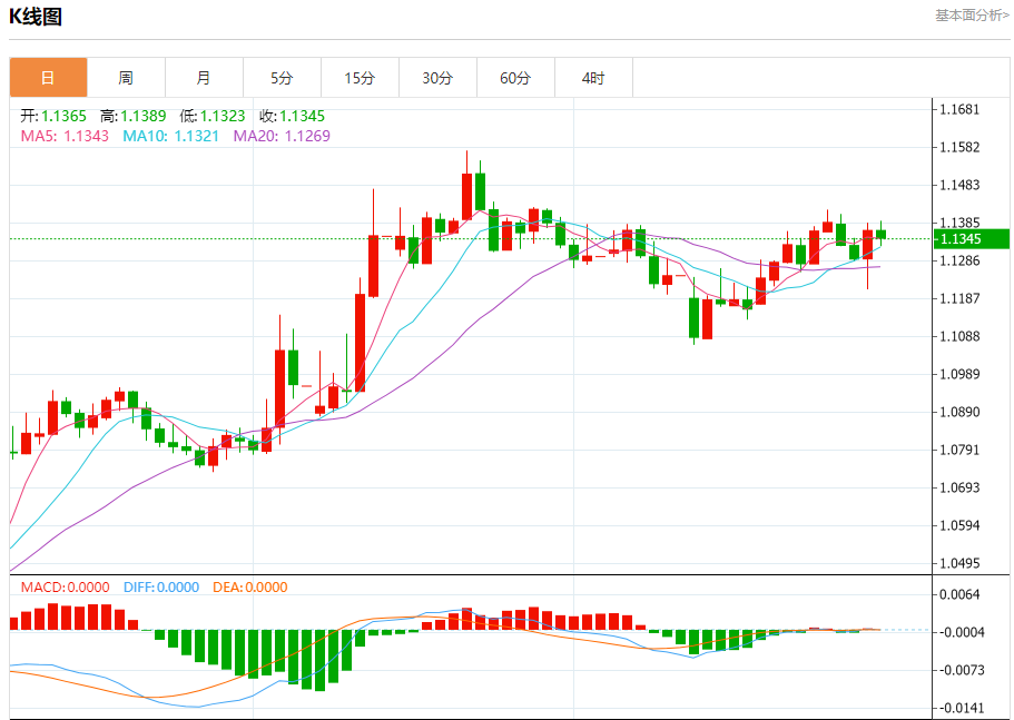 欧元/美元:截止北京时间20:20,欧元/美元下跌,现报1.1345,跌幅0.19%。纽市盘前,(欧元兑美元)的价格在最近的盘中交易中下跌,试图获得可能有助于其恢复和再次上涨的积极势头,试图摆脱(RSI)的一些明显超买状况,特别是在负面信号开始出现的情况下。