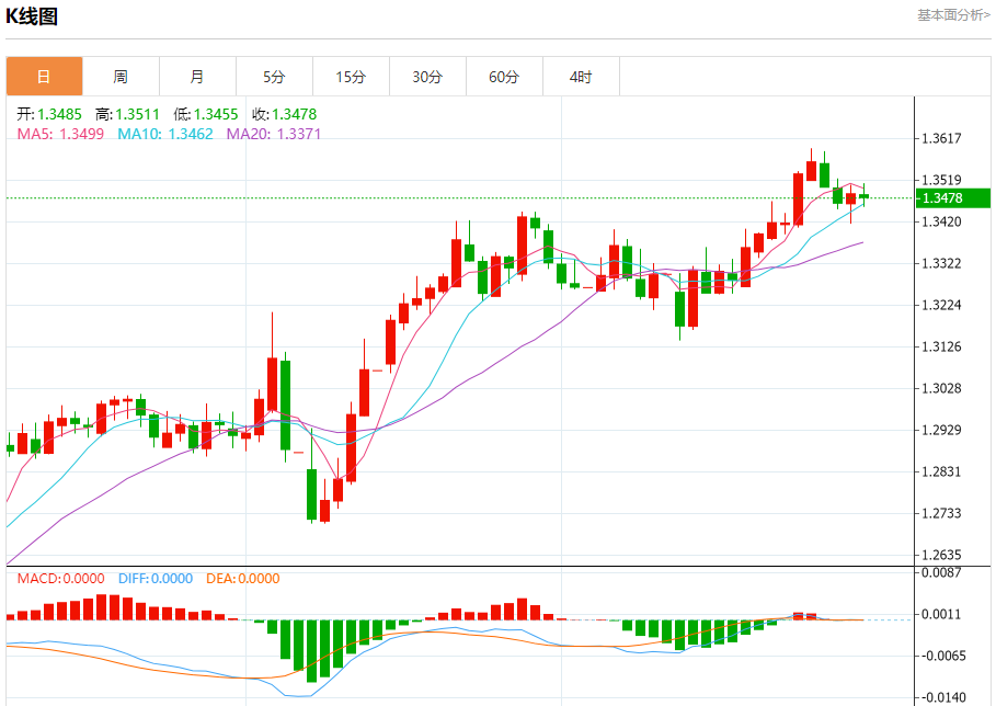 英镑/美元:截止北京时间20:20,英镑/美元下跌,现报1.3478,跌幅0.07%。纽市盘前,(GBPUSD)价格在最后一个交易日下跌,试图获得可能有助于其恢复和再次上涨的积极势头,并试图在(RSI)上卸载一些明显的超买条件,特别是在主要看涨趋势占主导地位的情况下,以及在短期内沿着一条小斜线交易,在EMA50上方交易所代表的动态支持的持续