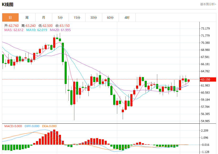 原油市场:截止北京时间20:27,美油上涨,现报63.160,涨幅0.48%。纽市盘前,(原油)价格在最近的盘中交易中上涨,这是因为它依赖于其EMA50的支撑,提供了一些积极的动力,并伴随着(RSI)上积极信号的出现,在达到超卖水平后,短期内看涨修正趋势占主导地位,并沿着一条斜线交易。
