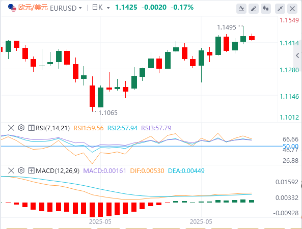 周五早盘,欧元/美元在1.1450下方的狭窄通道内交易。