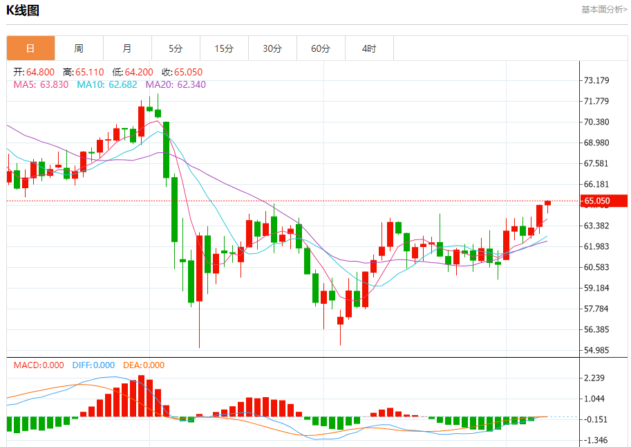原油市场:截止北京时间20:26,美油上涨,现报65.060,涨幅0.74%。纽市盘前,(原油)价格在最近的盘中交易中上涨,看涨趋势占主导地位,其交易沿着一条斜线进行,来自EMA50上方交易的正面压力持续存在,另一方面,我们注意到(RSI)在达到超买水平后出现负面信号,这是买盘力量占主导地位的标志,但它可能会减缓价格即将到来的涨势。