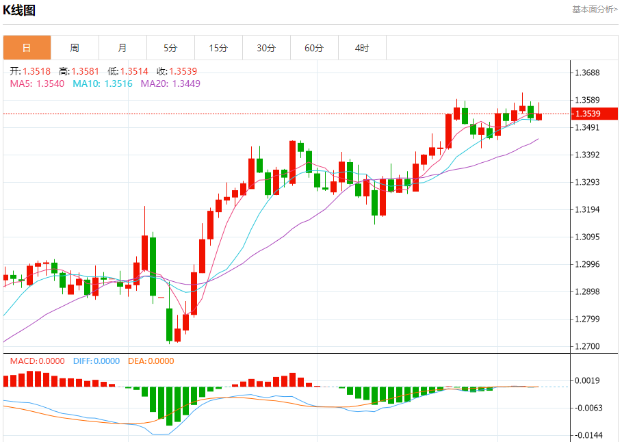 英镑/美元:截止北京时间20:26,英镑/美元上涨,现报1.3541,涨幅0.12%。纽市盘前,(GBPUSD)价格在最后一个交易日上涨,此前由于关键阻力位1.3585的稳定性而下跌,寻找更高的低点作为基础,这可能有助于获得突破该阻力所需的积极动力。