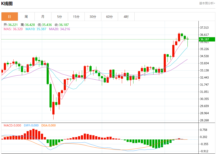 现货白银:截止北京时间20:20,现货白银下跌,现报36.196,跌幅0.06%。纽市盘前,(白银)价格在最后一个交易日上涨,此前由于其依赖于EMA50的支撑,加上关键支撑在35.90美元的稳定性,获得了强劲的看涨推动,提供了积极的动力,帮助其在达到超卖水平后,随着(RSI)上积极信号的出现,快速反弹。