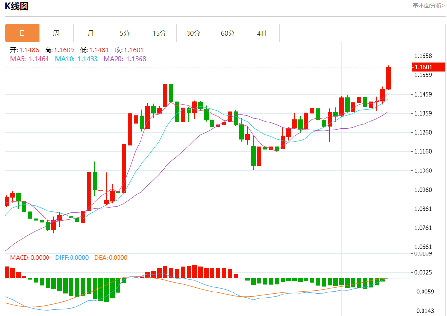 欧元/美元:截止北京时间20:20,欧元/美元上涨,现报1.1603,涨幅1.00%。纽市盘前,(欧元兑美元)的价格在最近的日内水平上扩大了其涨幅,在1.1550的阻力位突破了我们的早间目标,加强了短期看涨趋势的强度,这是由该对货币沿着看涨偏向线移动及其在EMA50上方的稳定性所支撑的。