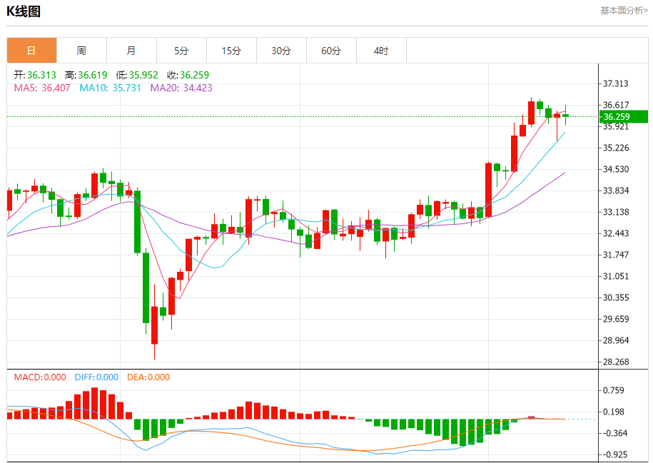 现货白银:截止北京时间20:20,现货白银下跌,现报36.263,跌幅0.18%。纽市盘前,在达到超买水平后,随着(RSI)上负面信号的出现,(白银)价格在最后一个交易日下跌,试图卸载一些超买水平,这使其能够恢复并再次上涨,来自其EMA50上方交易的积极压力继续存在,这代表了一种保持价格运动积极性的动态支持,同时短期主要看涨趋势继续存在,并沿着一条斜线交易。