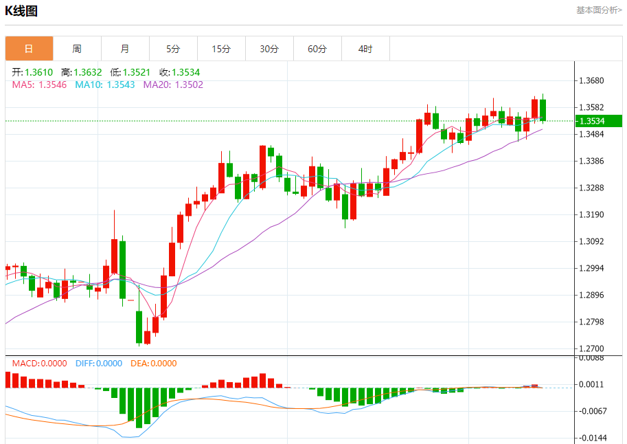 英镑/美元:截止北京时间20:20,英镑/美元下跌,现报1.3535,跌幅0.57%。纽市盘前,在未能突破1.3600的关键阻力位后,GBPUSD价格在最后一个交易日大幅下跌,试图获得突破该阻力位所需的看涨动能,并试图在(RSI)指标上摆脱一些明显的超买状况,特别是在这些指标上出现负面信号的情况下。该货币对正在从依赖EMA50的支撑接近,EMA 50代表了最后一段时间的积极支撑。