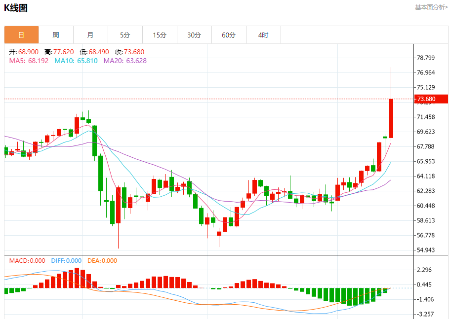 原油市场:截止北京时间20:20,美油上涨,现报73.680,涨幅8.25%。纽市盘前,(原油)价格在最近的盘中交易中略有上涨,在攻击了74.50美元的阻力位后,但它迅速反弹以收集其收益,试图获得可能有助于突破的积极势头,在短期内主要看涨趋势的主导地位及其沿着主要和次要斜线的交易中,另一方面,我们注意到(RSI)上负面信号的出现,这减缓了上涨。