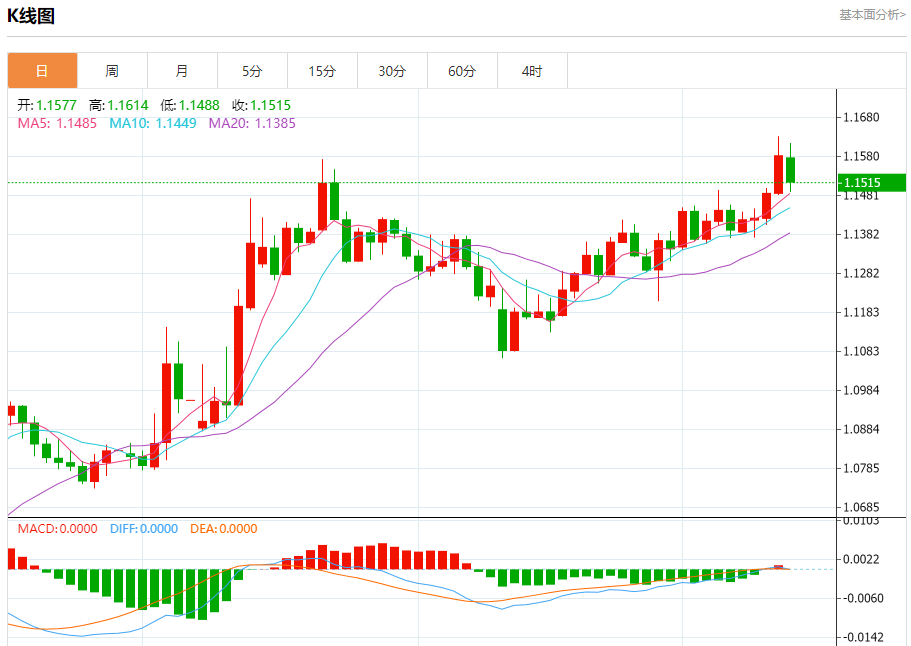 欧元/美元:截止北京时间20:20,欧元/美元下跌,现报1.1515,跌幅0.60%。纽市盘前,(欧元兑美元)的价格在最近的盘中水平下跌,试图寻找一个更高的低点,以此为基础,可能有助于它获得所需的积极势头并再次上涨,在短期基础上继续主要的看涨趋势,并沿着一条斜线交易,注意到(RSI)达到超卖水平,这表明它们开始出现积极的背离。