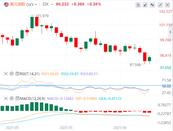 周四,数据显示美国就业和通胀都有所降温,从而支撑美联储年内降息两次。美元指数连续第二日走低,截至目前,美元报价98.23。
