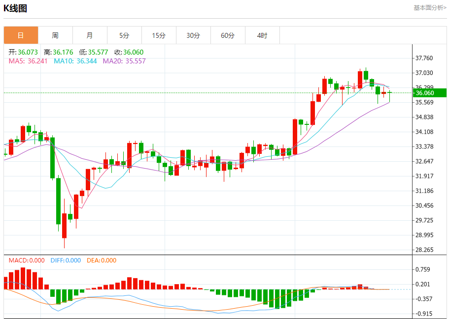 现货白银:截止北京时间20:23,现货白银下跌,现报36.064,跌幅0.05%。纽市盘前,(白银)的价格在有限的范围内波动,由于交易价格低于 EMA50 而持续负压,在短期看跌修正浪的主导下,除了在达到超买水平后 (RSI) 出现负面信号,加强了突破近支撑位的机会。