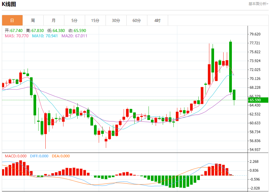 原油市场:截止北京时间20:23,美油下跌,现报65.570,跌幅4.31%。纽市盘前,(原油)价格在盘中波动水平上涨,试图收复之前的一些损失,并试图在 (RSI) 上摆脱一些明显的超卖条件,特别是随着来自它们的积极信号的出现,在它的感情中打破了短期的轻微看涨偏见,看跌修正浪占主导地位。