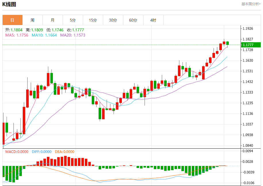 欧元/美元:截止北京时间20:23,欧元/美元下跌,现报1.1780,跌幅0.22%。纽市盘前,(欧元兑美元)在最后一个交易日上涨,利用平静的修正走势,导致其收复之前的涨幅,为获得继续上涨所需的看涨势头开辟了道路。这种复苏受到(RSI)明显超买条件的支持,为实现更多涨幅开辟了道路,没有可能阻碍其轨道的强大技术压力。