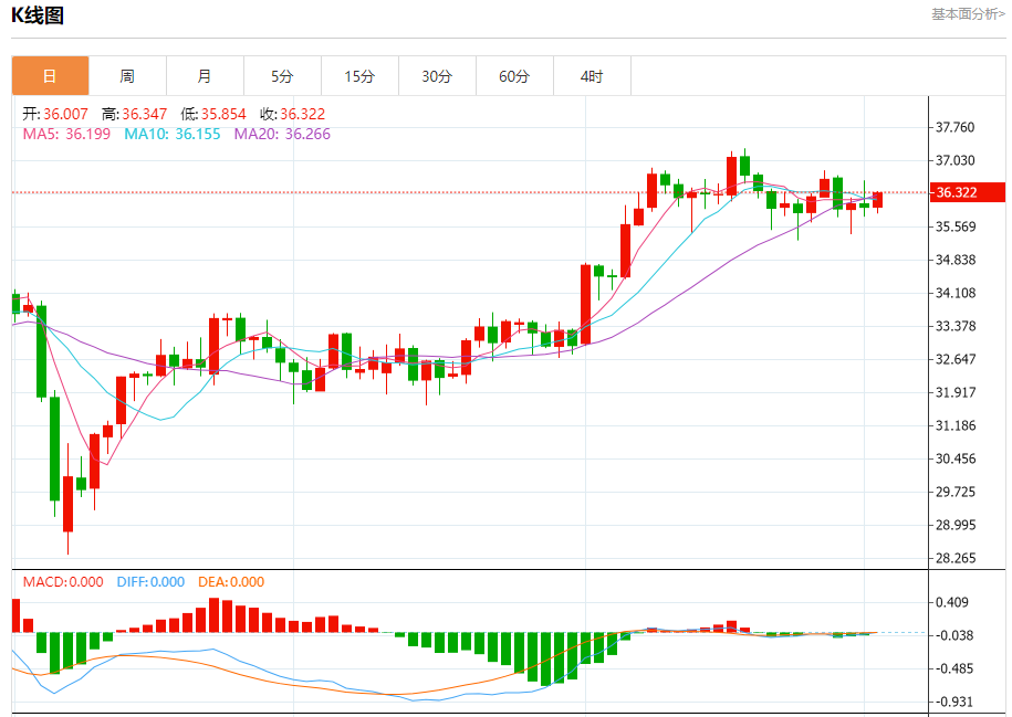 现货白银:截止北京时间20:23,现货白银上涨,现报36.320,涨幅0.86%。纽市盘前,(白银)价格在最后一个交易日上涨,因为它依赖于短期基础上的次要看涨趋势线的支撑,提供了看涨动力,试图超越EMA50的负面压力,这一上涨发生在(RSI)达到与价格走势相比夸张的超卖水平之后,为实现更多收益开辟了道路。