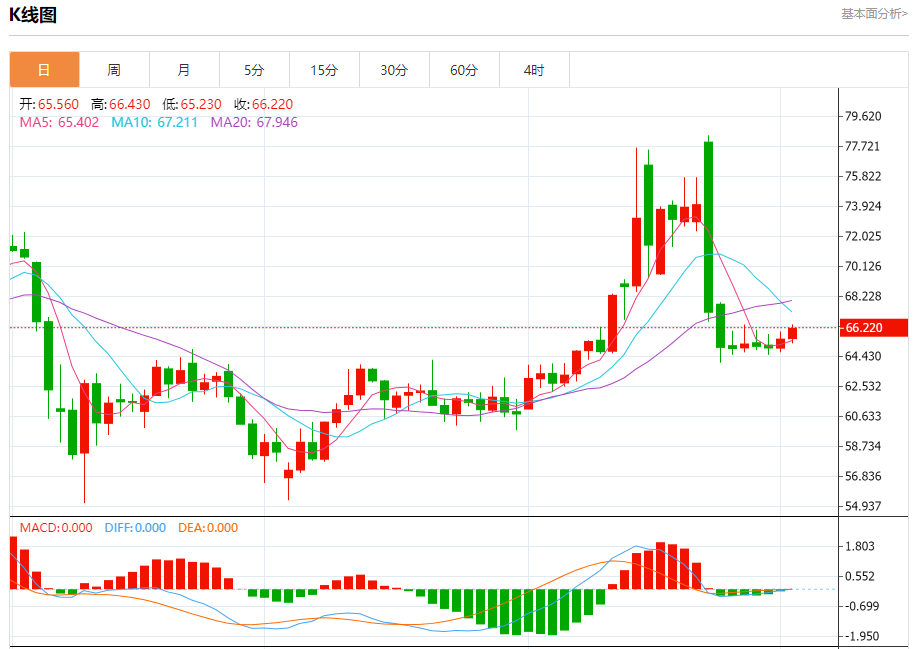 原油市场:截止北京时间20:23,美油上涨,现报66.210,涨幅1.16%。纽市盘前,(原油)在65.56美元阻力和63.70美元支撑之间保持窄幅震荡,表明市场处于混乱和预期状态,等待新的动机推动价格突破这一区间。