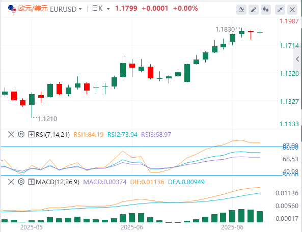 欧元/美元在周三小幅下跌后,在1.1800附近窄幅上下波动。