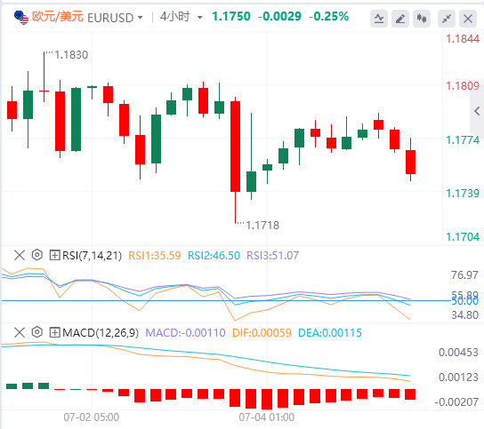 欧元/美元保持低迷,周一交投于1.1750附近的负值区域。当天早些时候来自德国的数据显示,继4月份录得1.6%的收缩之后,5月份工业生产按月增长1.2%。