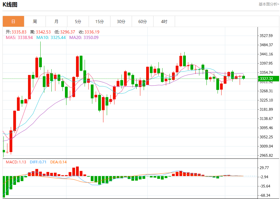 现货黄金:截止北京时间20:23,现货黄金下跌,现报3327.02,跌幅0.27%。纽市盘前,(黄金)价格在最后一个盘中交易中跌至低点,此前它在早盘交易中成功卸载了(RSI)上的一些明显超买条件,这使它能够轻松实现新的收益,它依赖于EMA50的支撑,因为它受到盘中积极技术形态的影响,以楔形下降模式为代表,提供了积极的动力,使它能够在盘中上涨。