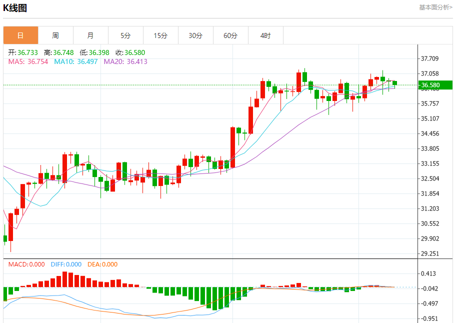 现货白银:截止北京时间19:16,现货白银下跌,现报36.594,跌幅0.37%。纽市盘前,(白银)价格在最后一个盘中交易中下跌,依靠EMA50的支撑,同时在短期内测试一条小幅看涨趋势线,代表着重新获得复苏和再次上涨所需的看涨势头的最后机会,在(RSI)出现积极信号的帮助下,价格在附近支撑位上方的稳定性加强了积极情况。