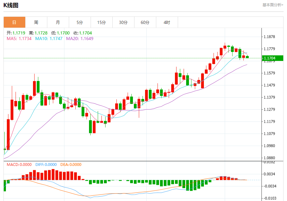欧元/美元:截止北京时间19:16,欧元/美元下跌,现报1.1704,跌幅0.18%。纽市盘前,欧元兑美元在最后一个盘中交易中小幅下跌,短期看跌修正趋势主导地位继续,价格由于交易低于EMA50而面临明显的负面压力,表明目前看涨势头。