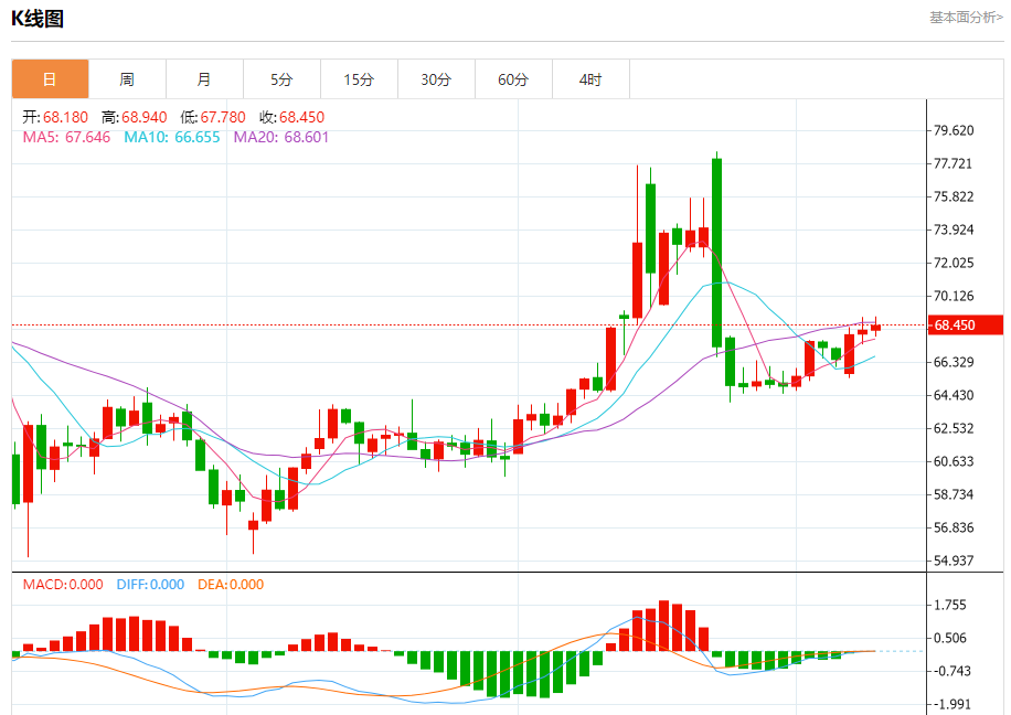 原油市场:截止北京时间19:16,美油上涨,现报68.430,涨幅0.15%。纽市盘前,(原油)在最后一个盘中交易中收于低位,伴随着(RSI)上出现负面重叠信号,指标没有达到强劲的超买水平,但它与价格走势之间的矛盾表明形成了负背离,这可能会在短期内对价格形成暂时压力。