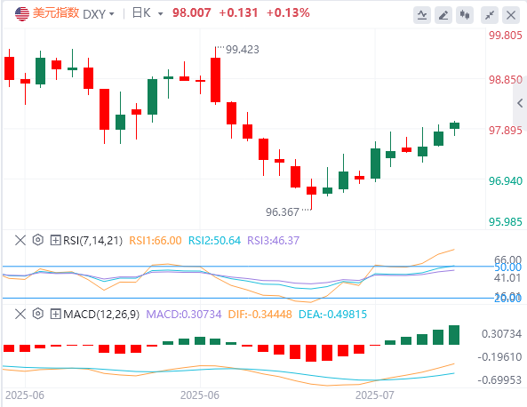 上周五,美元指数区间震荡,始终徘徊在98关口下方,截至目前,美元报价98。