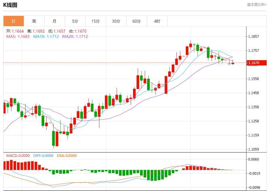 欧元/美元:截止北京时间20:23,欧元/美元上涨,现报1.1669,涨幅0.04%。纽市盘前,(EURUSD)的价格在最近的盘中水平下跌,此前它成功摆脱了(RSI)的超买条件,进入超买水平,这增加了该货币对的走势的负面因素,因为它在短期内处于看跌修正通道的范围内交易。