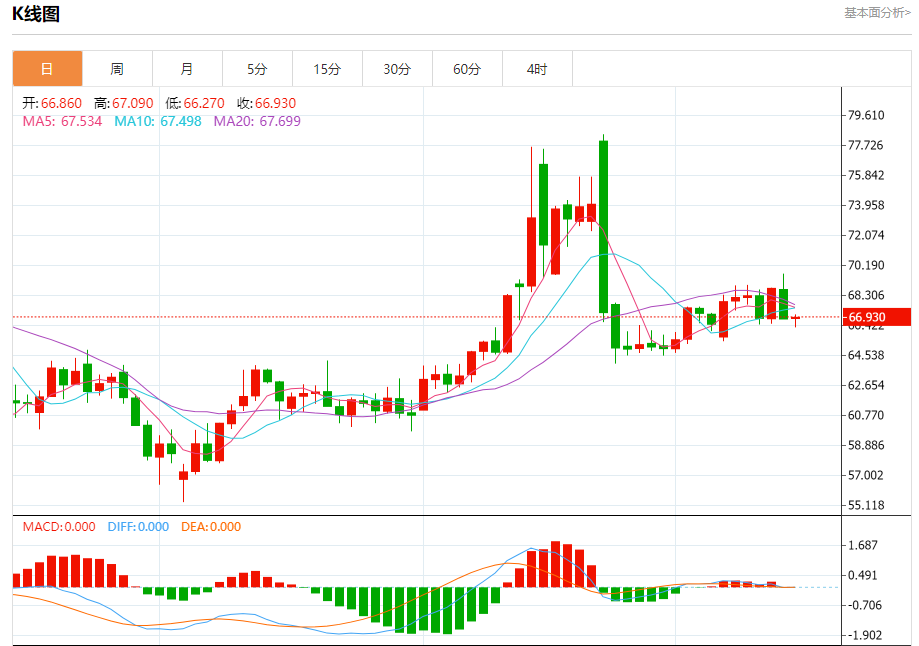原油市场:截止北京时间20:23,美油下跌,现报66.930,跌幅0.06%。纽市盘前,(原油)价格在最后一个盘中交易中稳定下来,RSI上出现积极信号,达到超卖水平,试图卸载其中一些条件,提供积极的动力,帮助其结算,因其交易低于EMA50而受到负面压力的影响,打破了短期的主要看涨趋势。
