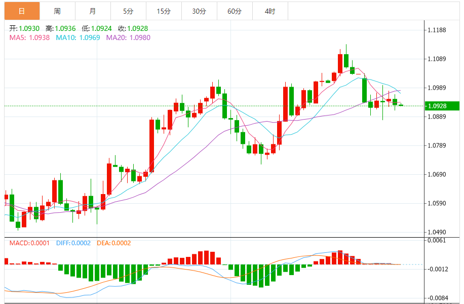 欧元:欧元/美元下跌,收报1.0930,跌幅0.18%。技术面上,汇价上行的初步阻力位于1.0959,进一步阻力位于1.0989,关键阻力位于1.1014;汇价下行的初步支撑位于1.0903,进一步支撑位于1.0879,更关键支撑位于1.0848。