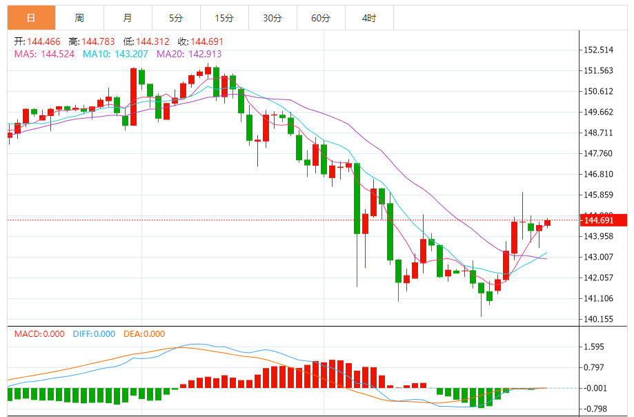 日元:美元/日元上涨,收报144.466,涨幅0.17%。技术面上,汇价上行的初步阻力位于144.887,进一步阻力位145.345,关键阻力位于146.08;汇价下行的初步支撑位于143.694,进一步支撑位于142.959,更关键支撑位于142.501。