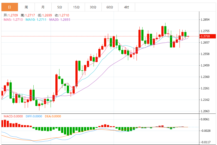 英镑:英镑/美元下跌,收报1.2709,跌幅0.30%。技术面上,汇价上行的初步阻力位于1.2751,进一步阻力位于1.2795,关键阻力位于1.2826;汇价下行的初步支撑位于1.2677,进一步支撑位于1.2645,更关键支撑位于1.2602。