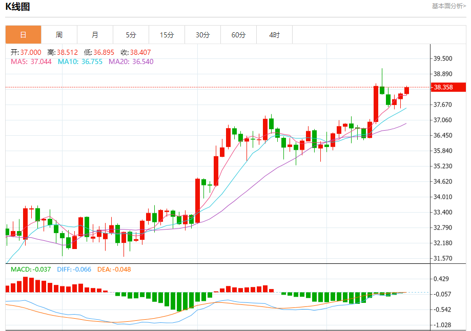 现货白银:截止北京时间20:23,现货白银上涨,现报38.337,涨幅0.60%。纽市盘前,(白银)价格在最后一盘中上涨,受到其持续高于EMA50交易的支撑,在短期主要看涨趋势的主导下,其沿偏线交易,另一方面,我们注意到(RSI)上开始出现负面重叠信号,在达到超买水平后,这可能会迫使价格反弹走低,以减轻这种超买状况并聚集积极势头。
