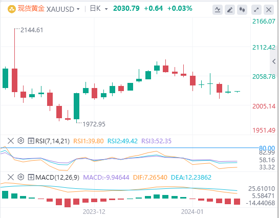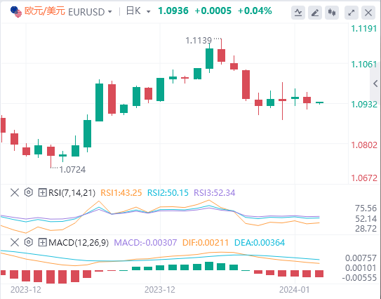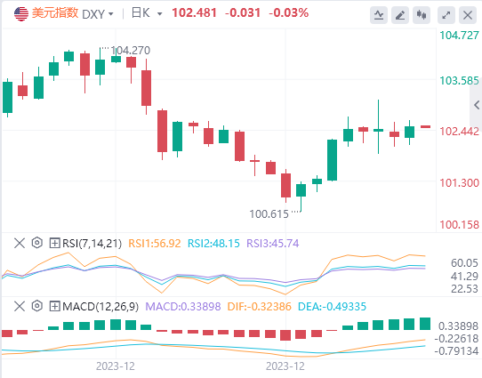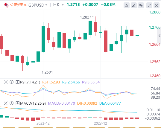 英镑:截止发稿,英镑/美元徘徊于1.2715附近。昨日英镑/美元下跌,收报1.2709,跌幅0.30%。该货币对小幅上涨,主要受货币政策分歧的推动。尽管通胀和工资增长似乎正在放缓,但英国央行(BoE)仍维持其进一步加息的立场,而美联储(Fed)预计将最早在3月开始其宽松周期。此外,市场预计今年将降息五次,但这一切都将取决于即将到来的数据,因为经济数据将是宽松日历的决定因素。技术面上,汇价上行的初步阻力位于1.2751,进一步阻力位于1.2795,关键阻力位于1.2826;汇价下行的初步支撑位于1.2677,进一步支撑位于1.2645,更关键支撑位于1.2602。
