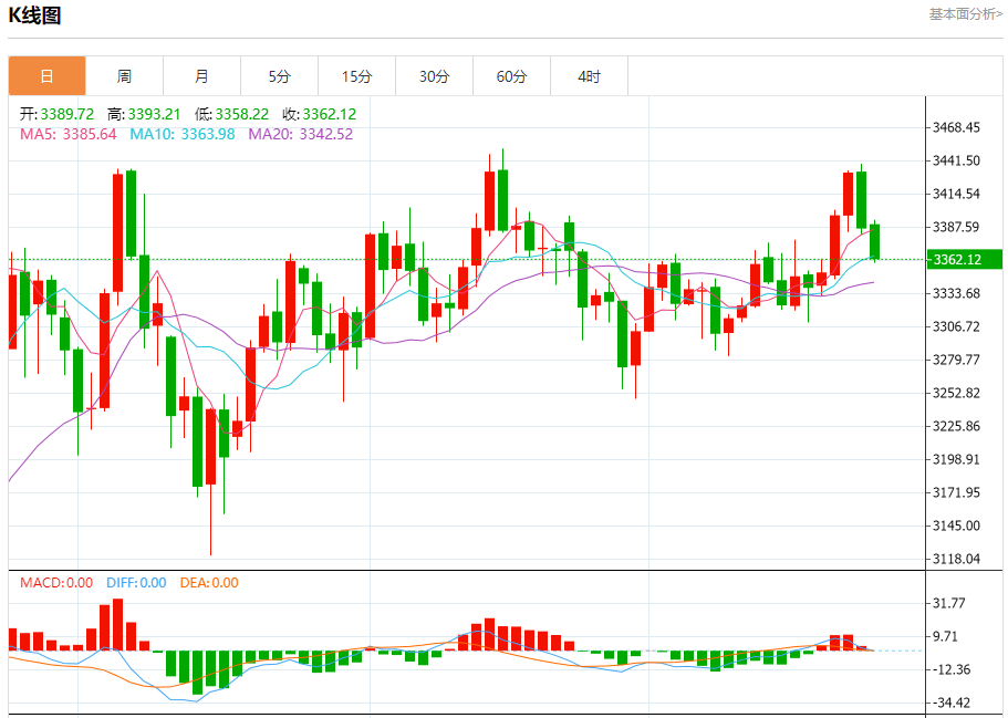 现货黄金:截止北京时间20:23,现货黄金下跌,现报3362.30,跌幅0.73%。纽市盘前,(黄金)的价格在最后一盘交易中继续下跌,因为价格试图寻找上升的低点,以此为基础,可能有助于其获得复苏所需的积极动力,依靠其EMA50的支撑,在主要看涨趋势的主导地位下,其交易在短期基础上与小偏见线一起支持这一趋势,随着(RSI)达到超卖水平,与价格相比被夸大了,表明看跌势头下降。