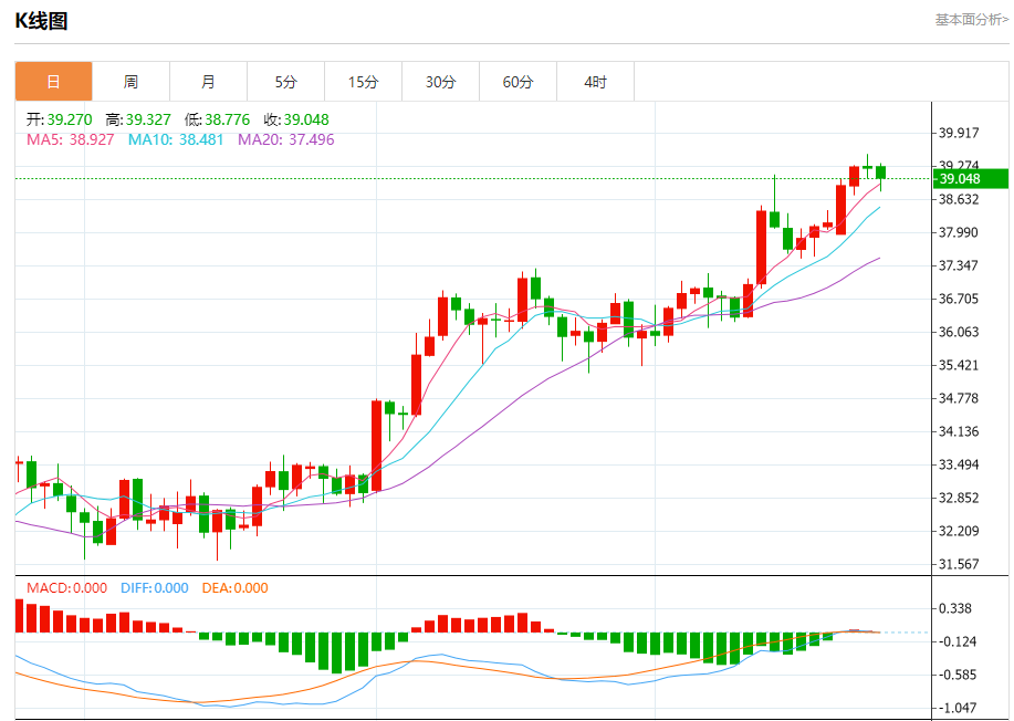 现货白银:截止北京时间20:23,现货白银下跌,现报39.041,跌幅0.50%。纽市盘前,(白银)价格在最后一个交易日下跌,原因是关键阻力位39.10美元的稳定性,收集了之前的上涨并试图获得可能有助于其恢复和突破该阻力的看涨势头,其在EMA50上方的交易所代表的动态支撑仍在继续,形成了阻止价格下跌的障碍。在短期基础上主要看涨趋势的主导地位及其沿着一条斜线交易的过程中,我们注意到(RSI)达到了与价格走势相比夸大的超卖水平,这表明正背离开始形成。