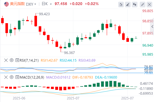 周四,得益于美国与贸易伙伴的积极进展,美元指数结束四连跌,截至目前,美元报价97.45。
