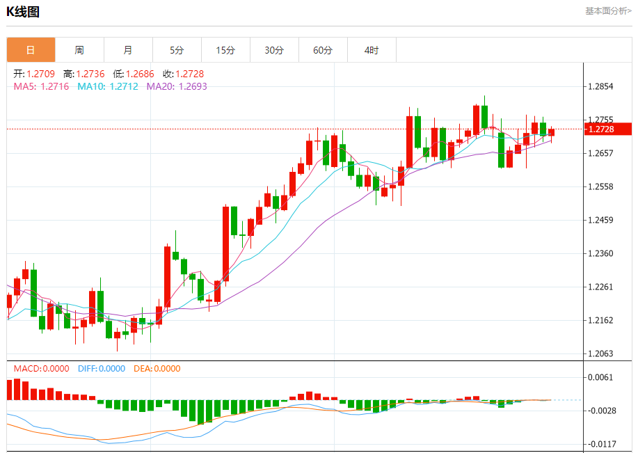 英镑/美元:截止北京时间21:20,英镑/美元上涨,现报1.2729,涨幅0.15%。纽市盘前,GBPUSD对正试图突破1.2720水平,这是今天预期负面情景延续的第一个保护因素,因为它受到随机积极因素的影响,这促使人们对即将到来的交易保持谨慎,因为继续上涨和突破1.2740将停止熊市趋势,并导致价格再次回到主要的看涨轨道,而价格需要在1.2720以下盘整,以继续其下一个主要目标位于1.2590的熊市趋势。