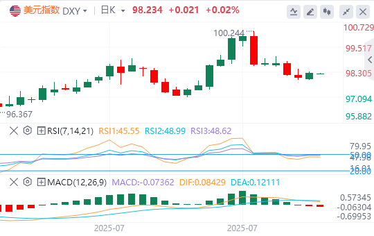 美元指数:截止发稿,美元指数徘徊在98.23美元。美元上周五走强,但由于经济数据疲软导致交易商对今年更多降息的可能性进行定价,同时投资者也在评估美国总统特朗普对美联储的提名,美元周线下跌。自公布的7月份就业报告显示雇主当月增加的就业岗位少于预期,同时前几个月的就业增幅也被大幅下调以来,美元已经下跌。其他数据,包括疲软的楼市市场和服务业数据,也都表明经济正在放缓。技术面上,如果美元指数成功攀升至98.50上方,它将向50的98.90移动平均线移动。RSI处于温和区域,如果出现正确的催化剂,还有很大的动力空间。