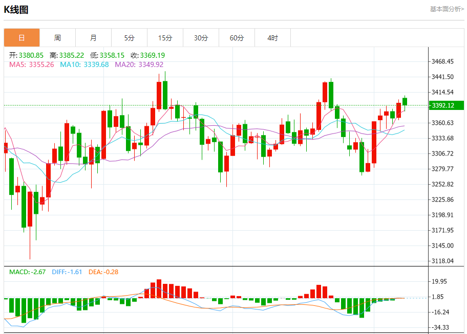 现货黄金:截止北京时间20:23,现货黄金下跌,现报3392.00,跌幅0.09%。纽市盘前,(黄金)价格在触及3400美元的主要阻力位后,在最后一个交易日下跌,这代表了我们在前一份报告中的潜在目标。这种下跌是由于这种阻力的稳定性,试图获得积极的势头,可能会让它突破这一水平。