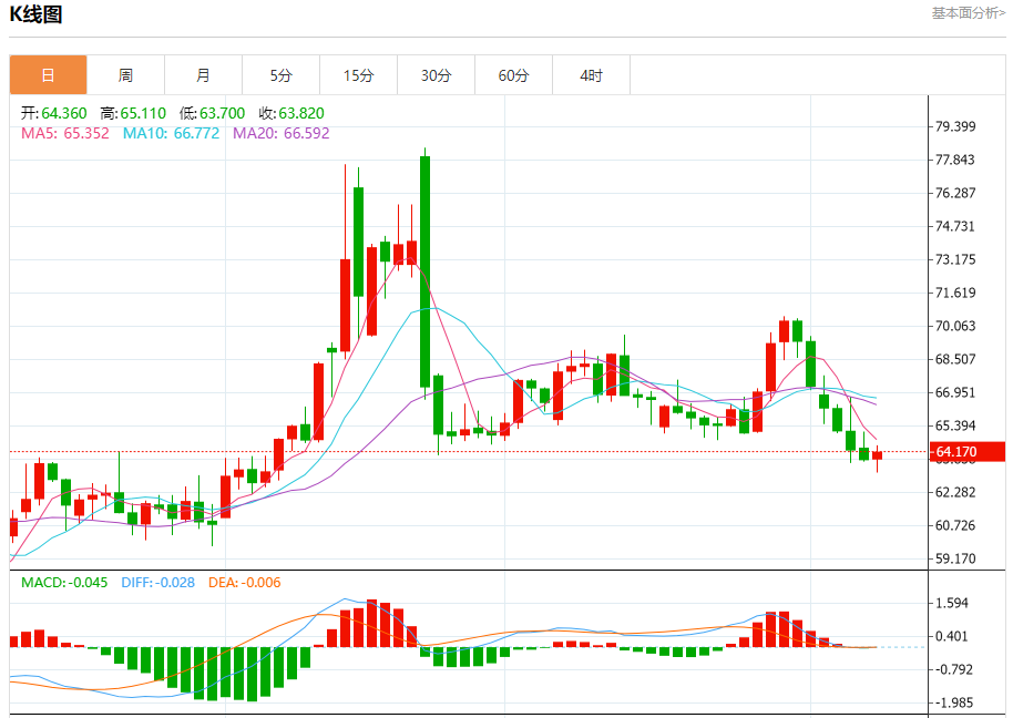 原油市场:截止北京时间20:23,美油上涨,现报64.150,涨幅0.45%。纽市盘前,(原油)价格在最后一盘中收于大幅下跌,受其稳定在EMA50下方的负面压力持续的影响,短期内仍处于小幅看跌波浪的主导下,沿着看跌偏向线移动,表明主导负面势头的强度。