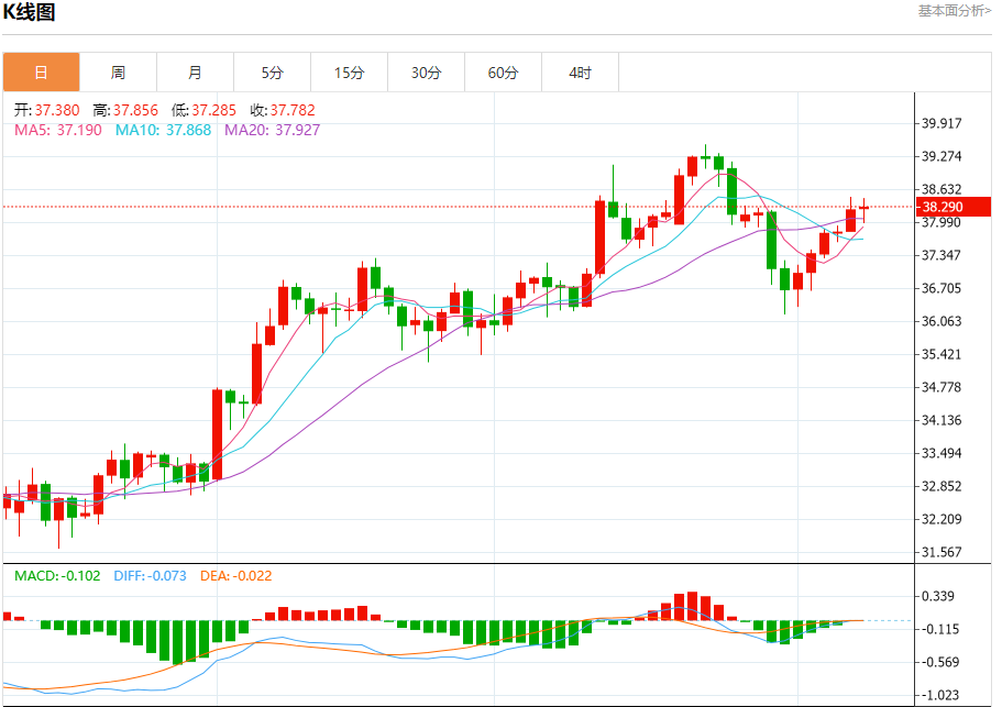 现货白银:截止北京时间20:23,现货白银上涨,现报38.298,涨幅0.18%。纽市盘前,(白银)价格在盘中水平的最后一次交易中下跌,在(RSI)上出现负面信号,试图摆脱其明显的超买状态,以收集其积极的力量,可能有助于其恢复和再次上涨,在主要看涨趋势的主导地位及其在一个小波动范围内的移动,表明这一趋势的主导地位,利用其在EMA50上方交易所代表的动态支持,加强围绕价格的积极势头。