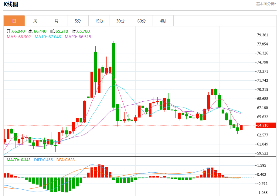 原油市场:截止北京时间20:23,美油上涨,现报64.210,涨幅0.53%。纽市盘前,(原油)价格在最后盘中交易中上涨,收复了之前的部分失地,受到(RSI)积极信号出现的支撑,看跌趋势占主导地位,交易价格低于EMA50,加剧了负面压力。
