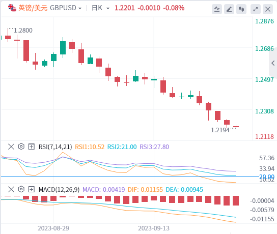 英镑/美元:截止发稿,英镑/美元走低,现报1.2201,跌幅0.08%。欧市盘前,英国央行决定维持基准利率在15年高点5.25%不变,停止自2021年12月以来连续第14次升息。这可能打压英镑/美元。英国央行官员表示未来会议都有可能,显示英国央行在必要时可能升息也可能停止升息。